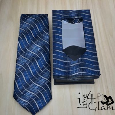 Men's Tie and Cuff Link Set Navy Blue Gray Pattern