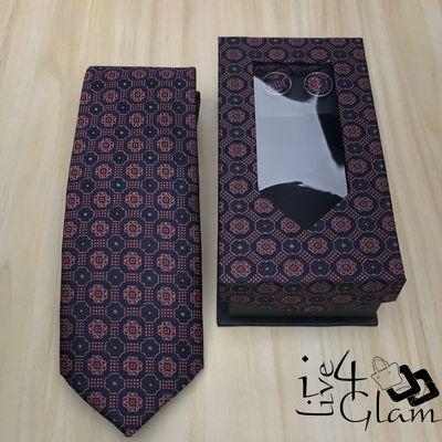 Men's Tie and Cuff Link Set Red Square Pattern